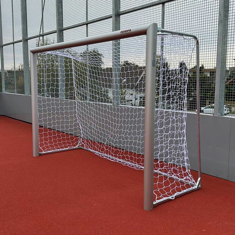 Aluminum mini-football goals with dimensions of 3x2 m, with folding bows, the main frame made of profile 120x100 mm, goals installed in assembly sleeves embedded in the ground (sleeves included)